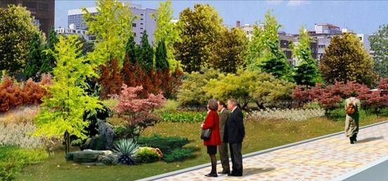 居住區綠地規劃設計入口應設在居民的主要來源,數量2~4個,與周圍道路、建筑結合起來考慮具體的位置。