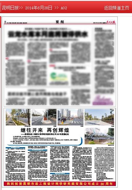 昆明日報>> 2014年6月28日 >> 昆明日報A02平面宣傳效果截圖。