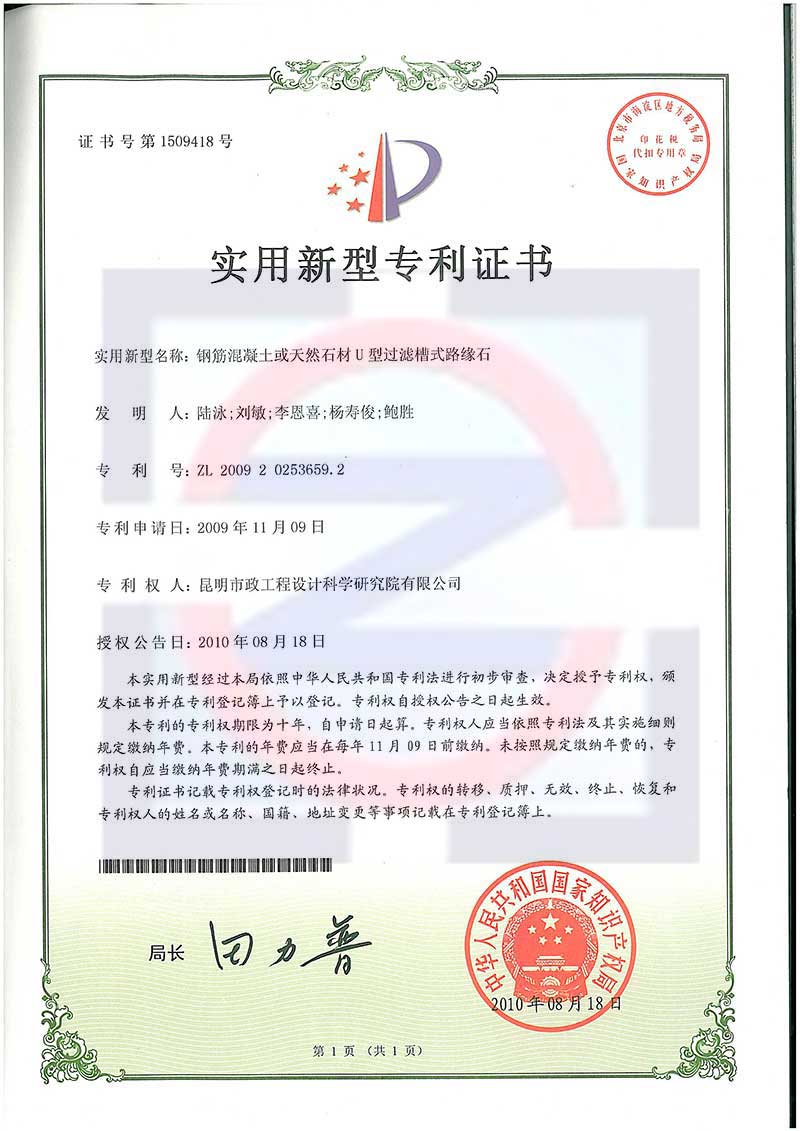 實用新型專利證書