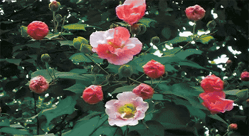 欒樹(黃)、白蘭花(白)、珍珠梅(白)、刺槐(白)、南天竹(白)、小葉女貞(白)、鶯陽木(黃綠)、玫瑰(紅、門)、海仙花(白、粉)、流蘇(白)、醉魚草(褐)、太平花(黃)、七葉樹(白)、日本繡線菊(白)、火棘(白)、芍藥(紅)、女貞(白)、水枸子(白)、月季(紅、白等)、錦帶花(白、粉)、胡枝子(粉)、天日瓊花(白)、西洋山梅花(白)、紫薇(紅)、珍珠繡球(白)、雪柳(白)、木香(白、黃)、木槿(紅、紫)、灰枸千(白)、刺楸(白)。夏蠟梅(黃)、文冠果(門)、合歡(紅、扮)、山梅花(白)、素馨(黃)、臭椿(黃)、龍吐珠(粉)、光葉薔薇(紅)、四照花(白)、紅花繼木(紅)、美國凌霄(粉)、水榆花楸(粉)、槐樹(自)、牡丹(紅、白、粉、黃)、迎夏(黃)、廣玉蘭(白)、黃花夾竹桃(黃)、紫穗槐(褐)、山楂(白)、蝴蝶樹(白)、金銀花(白)、美國鵝掌楸(黃)、麻葉繡球(白)、黃山欒(黃)、黃刺玫(黃)、東北珍珠梅(白)、毛刺槐(紅)、夾竹桃(紅)、八仙花(白)、檉柳(粉)、大繡球(白)、梔子花(白)、鵝掌楸(黃)、溲疏(白)、石榴(紅)、繼木(粉)、六月雪(白)、凌霄(紅)、花愀(粉)、銀薇(白)。