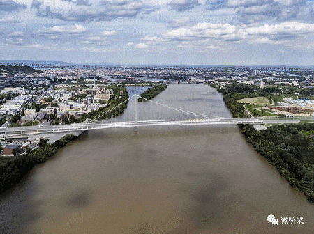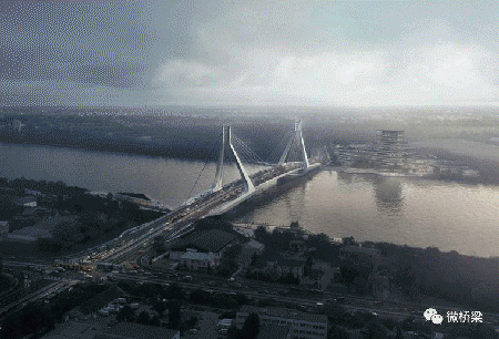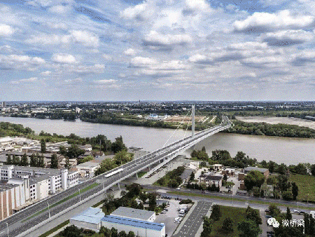 新多瑙河大橋跨越420米寬的河床,位于Ujbuda區(qū)和Csepel島之間的新公路連接處。
