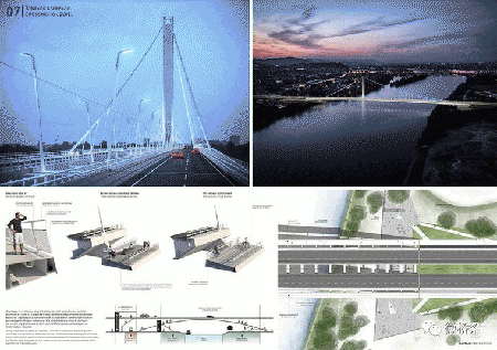 盡管它們在結(jié)構(gòu)概念上有所不同,但它們代表了城市中三個獨特的橋梁系列,連續(xù)的上弦連接著布達和佩斯。新橋的目的是不僅在結(jié)構(gòu)設(shè)計方面繼續(xù)保留這一傳統(tǒng),而且具有適度的優(yōu)雅和輕盈,動感的特點,作為布達佩斯橋梁精髓的現(xiàn)代體現(xiàn)。帶有一個80米高中央塔的自錨式懸索橋代表了這種傳統(tǒng)的傳承,伊麗莎白和自由橋梁的概念在一個全新的、最新和獨特的方式在一個新的位置上的演變和擴展。
