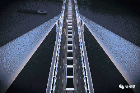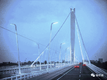 4.5米高的分離式雙正交異性鋼空心箱體橋面板采用橫梁加固,通過垂直吊架與主懸索連接。在左右上部結(jié)構(gòu)之間有8米寬的開口,橋梁變得更輕,并且不會關(guān)閉下面的空間,這在布達一側(cè)尤其重要,在那里橋梁繼續(xù)建造設(shè)計的五跨進橋,由鋼筋混凝土組成門式框架采用細長的后張鋼筋混凝土板。