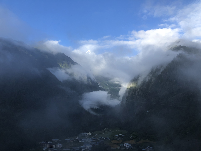 為適應雨崩的高原氣候,防止高反,更是為觀賞和拍攝只有特定的時間特定的地點才能看到日照金山奇觀,特意在吉祥飛來寺住宿一晚。