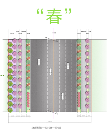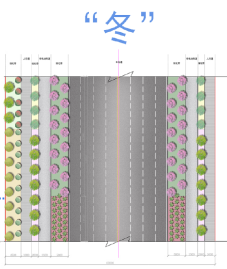 綠化注重景色季相變化,按照“春夏秋冬”四段布景。春—“綠意盎然”;夏—“藍花盈盈”;秋—“姹紫嫣紅”;冬—“粉妝玉砌”。