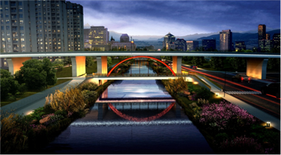 采用直行雙向6車道跨越云秀路、新寶象河及官渡278號路,地面輔道與云秀路及278號路平面交叉,同時設置非機動車與人行專用慢行系統橋梁跨越新寶象河的綜合交叉口設計方案。