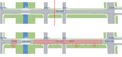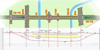 官渡14號路連續下穿巫家壩路、海河、主4、支237、昌宏路,暗埋段長度979.14m(紅線與規劃紅線一致)。