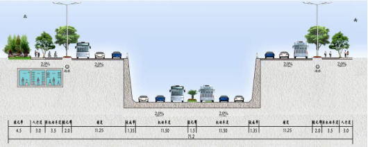 為節省造價,同時兼顧利用結構空腔,考慮對下穿暗埋段頂部的空腔開發為地下空間。
