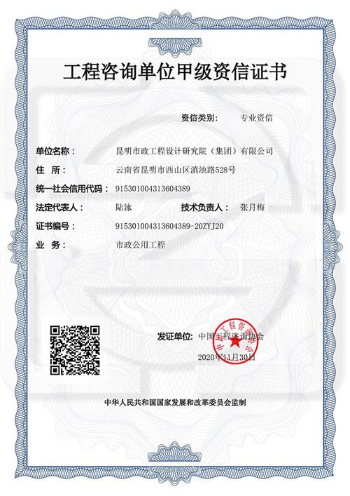 工程咨詢甲級資信證書